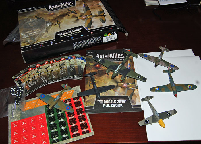 El nuevo juego de combate aéreo de Axis&Allies, que comenté en esta entrada, me ha gustado bastante, la verdad. Como muchos de mi quinta, crecí con historias de la Segunda Guerra Mundial, y la Batalla de Inglaterra, con su aire épico (mitificado, pues la realidad, como siempre fue sucia y terrible), siempre ha estado en mi imaginario... Debido a ello, me he visto en la "necesidad" de hacerme con el starter anterior de este sistema: Angels 20, ambientado en la Batalla de Inglaterra. Lo he pedido por Amazon UK y me ha salido por 25€, gastos de envío incluidos.
